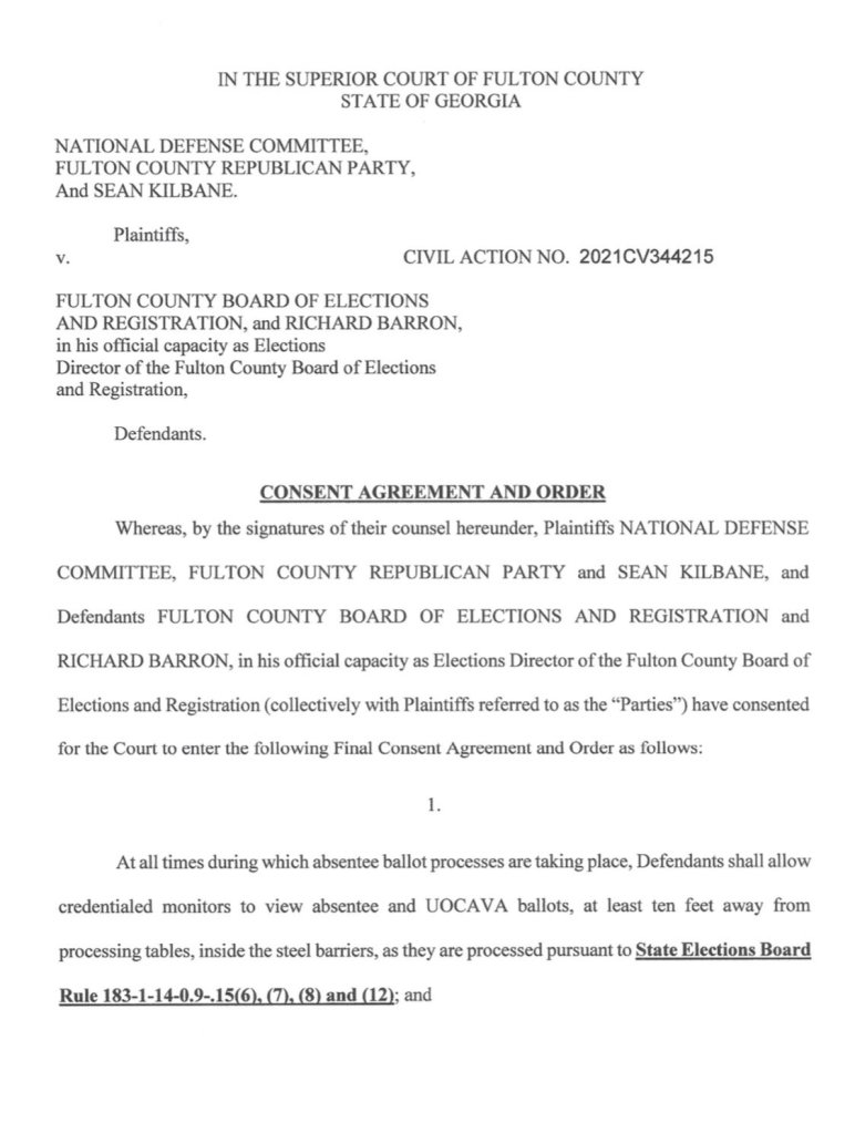 Fulton County, GA. has BLOCKED our credentialed monitors from overseeing absentee ballots and verifying signatures! They are REQUIRED to allow our observers in by the superior court’s order.